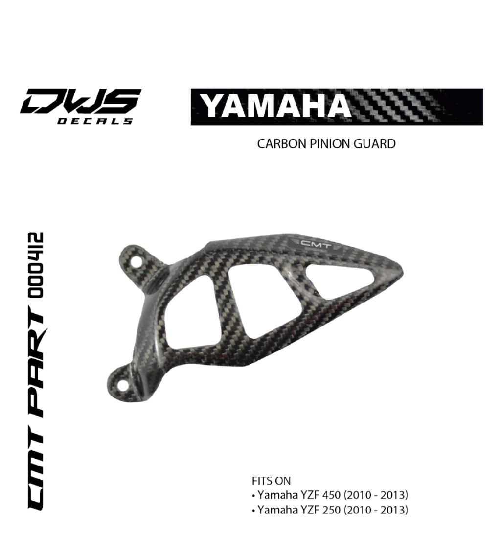 Carbon pinion guard of carbon for Yamaha YZF 450 2010 - 2011 - 2012 - 2013 models. The use of this accessory is designed to ensure the correct operation of the pinion and to protect your vehicle from contact with external agents (such as stones and branches) that may block the engine.