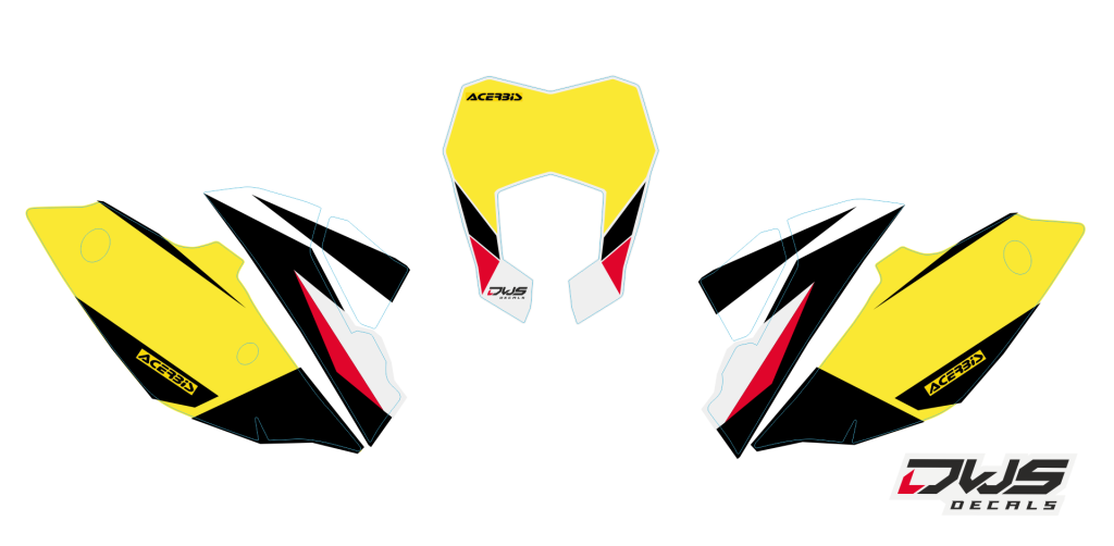 Trimset bestaande uit: - Voorspatbord sticker (2 delig) - Achterspatbord sticker (3 delig)- Voorvorkbeschermer stickers (2 delig)- Brugstickers (2 delig)