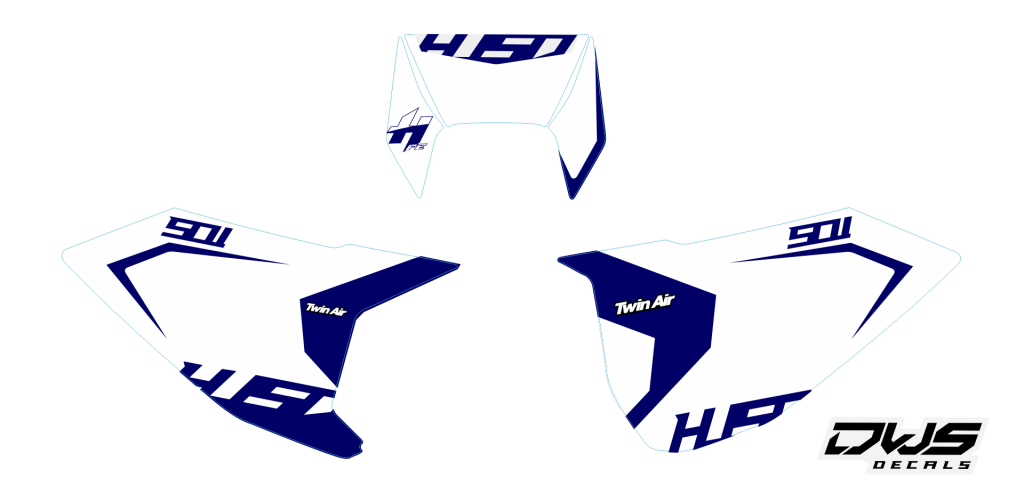 complete stickerset TC 50 husqvarna 2017 2018 dws decals graphics grahics aufklebe decore number decals nummerset blue kotflugel front fender rear fende fork protectors kabel geschutzer side panels new designs DWS decals