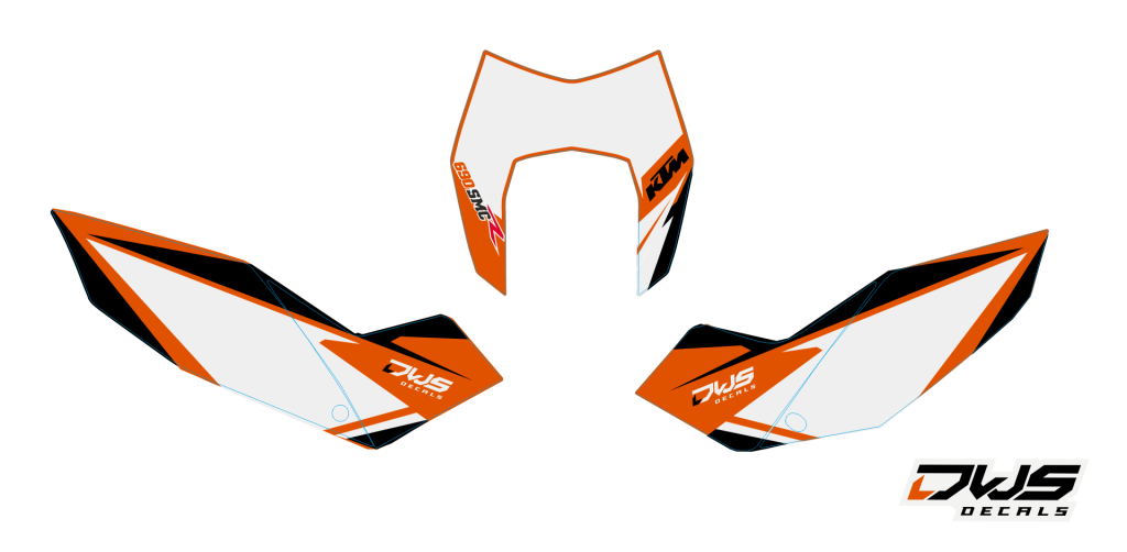 Nummerset KTM 690 SMC / 690 enduro R 2012/2016 Model 3Nummerset bestaande uit- Voornummer en zijnummers (5 delig)
