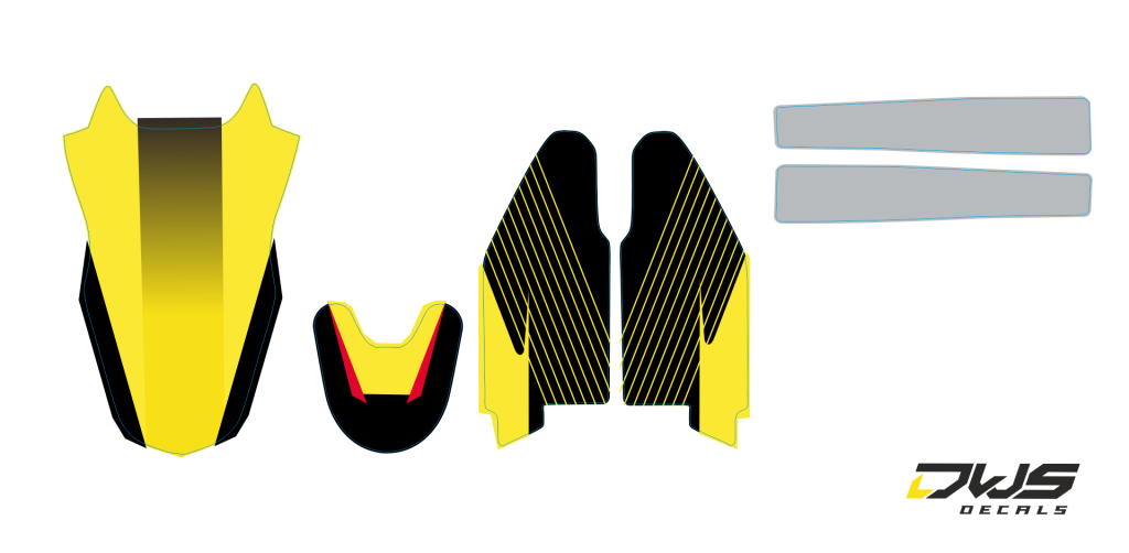 Trimset bestaande uit: - Voorspatbord sticker - Achterspatbord sticker - Voorvorkbeschermer stickers - (2 delig)- Brugstickers - (2 delig)