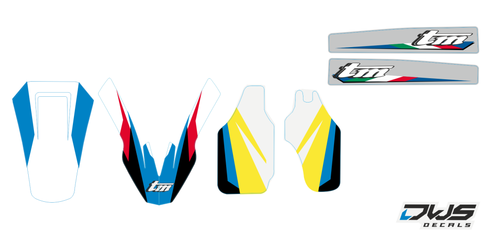 Trimset bestaande uit: - Voorspatbord sticker - Achterspatbord sticker - Voorvorkbeschermer stickers - (2 delig)- Brugstickers - (2 delig)