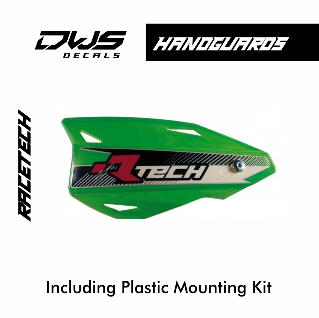 RaceTech Cross/Enduro Vertigo Handguards. The new RaceTech handguards with an attractive, modern design. Made with IPL technologies mounted independently from the brake and clutch perches with a large range to adjust up, down, left and right. Comes complete with universal plastic mounting kit 7/8" and 11/8".