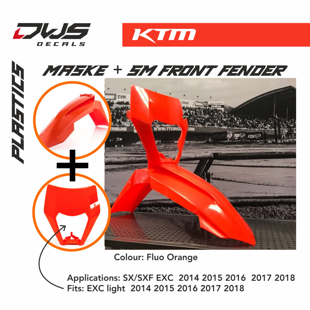 KTM Plastics Acerbis EXC EXC-F 2014 2016 Maske + SM Front Fender Fluo Orange (webshop_product_code 1303KTM SM FLUO ORANGE)
